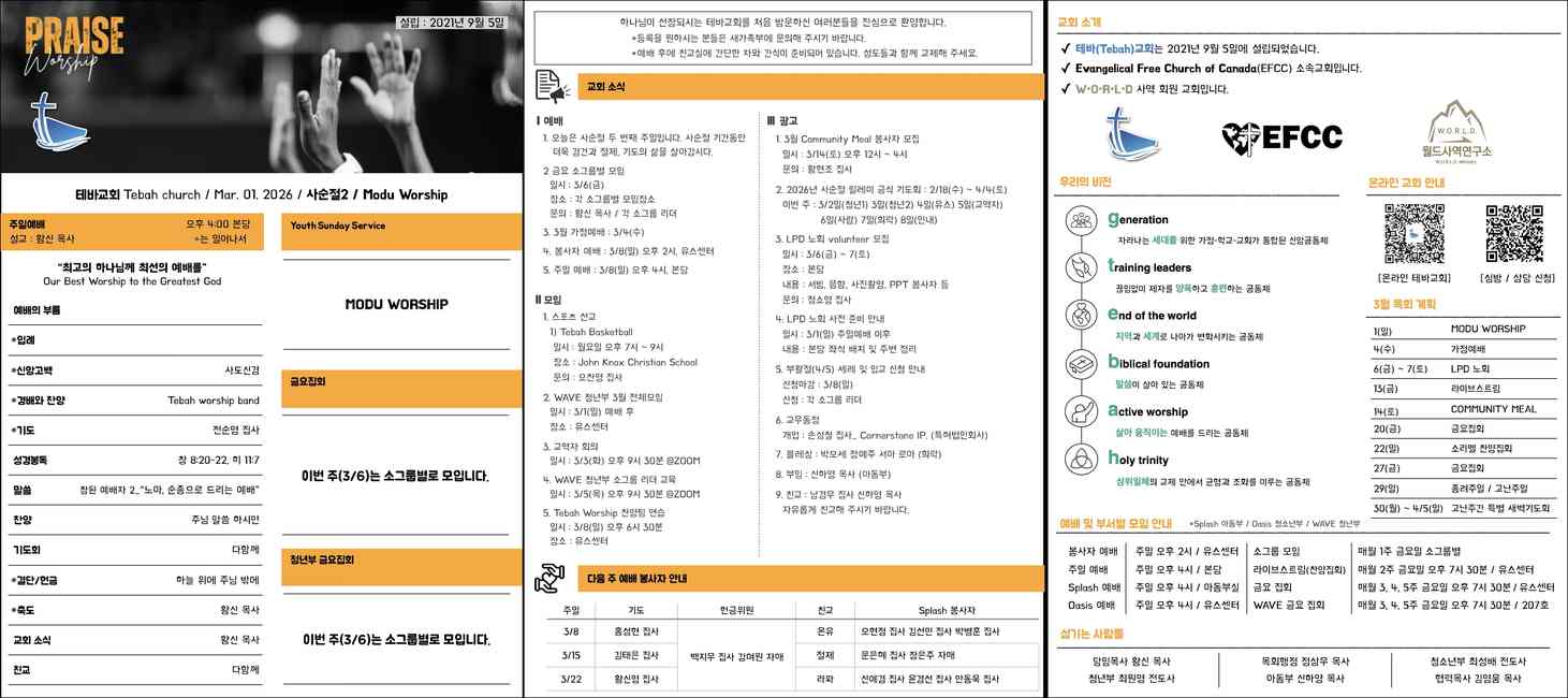 일시 : 3/1(일) 예배 후